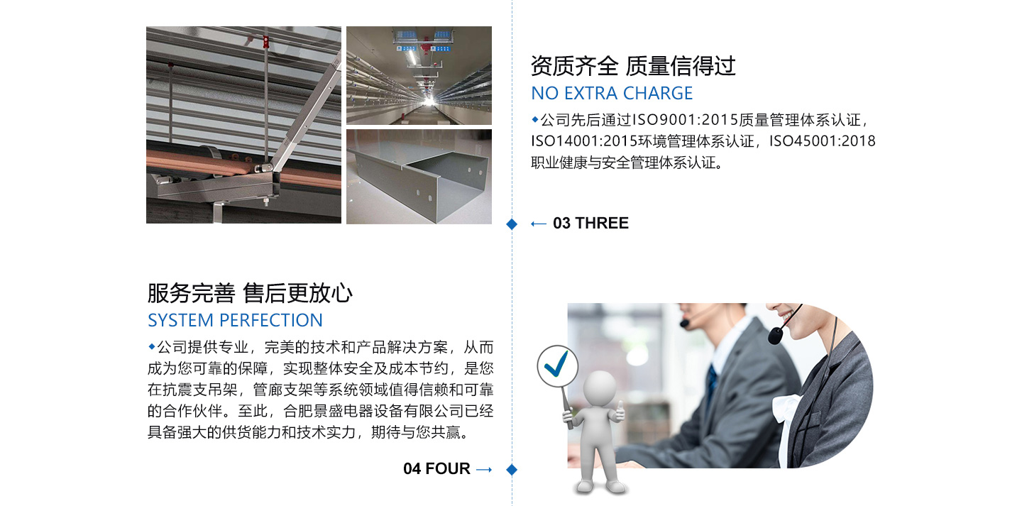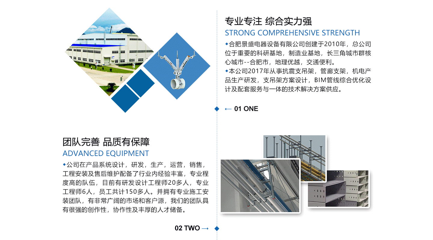 合肥景盛電器設(shè)備有限公司創(chuàng)建于2011年,注冊(cè)資本3000萬(wàn),總公司位于中國(guó)重要的科研基地,制造業(yè)基地,長(zhǎng)三角城市群中心城市-----合肥市,地理位置好,交通方便。本公司2017年從事抗震支吊架,電纜橋架,機(jī)電產(chǎn)品生產(chǎn)研發(fā),支吊架方案設(shè)計(jì),BIM管線綜合優(yōu)化設(shè)計(jì)及配套服務(wù)與一體的技術(shù)解決方案供應(yīng)。公司在產(chǎn)品系統(tǒng)設(shè)計(jì),研發(fā),生產(chǎn),運(yùn)營(yíng),銷售,工程安裝及售后維護(hù)配備了行業(yè)內(nèi)經(jīng)驗(yàn)豐富,服務(wù)程度高的隊(duì)伍,目前有研發(fā)設(shè)計(jì)工程師20多人,工程師6人,員工共計(jì)150多人。并擁有施工安裝團(tuán)隊(duì),有非常廣闊的市場(chǎng)和客戶源,我們的團(tuán)隊(duì)具有很強(qiáng)的創(chuàng)作性,協(xié)作性及豐厚的人才儲(chǔ)備。 公司先后通過(guò)ISO9001:2015質(zhì)量管理體系認(rèn)證...